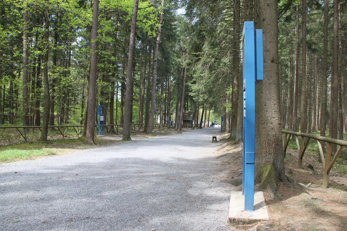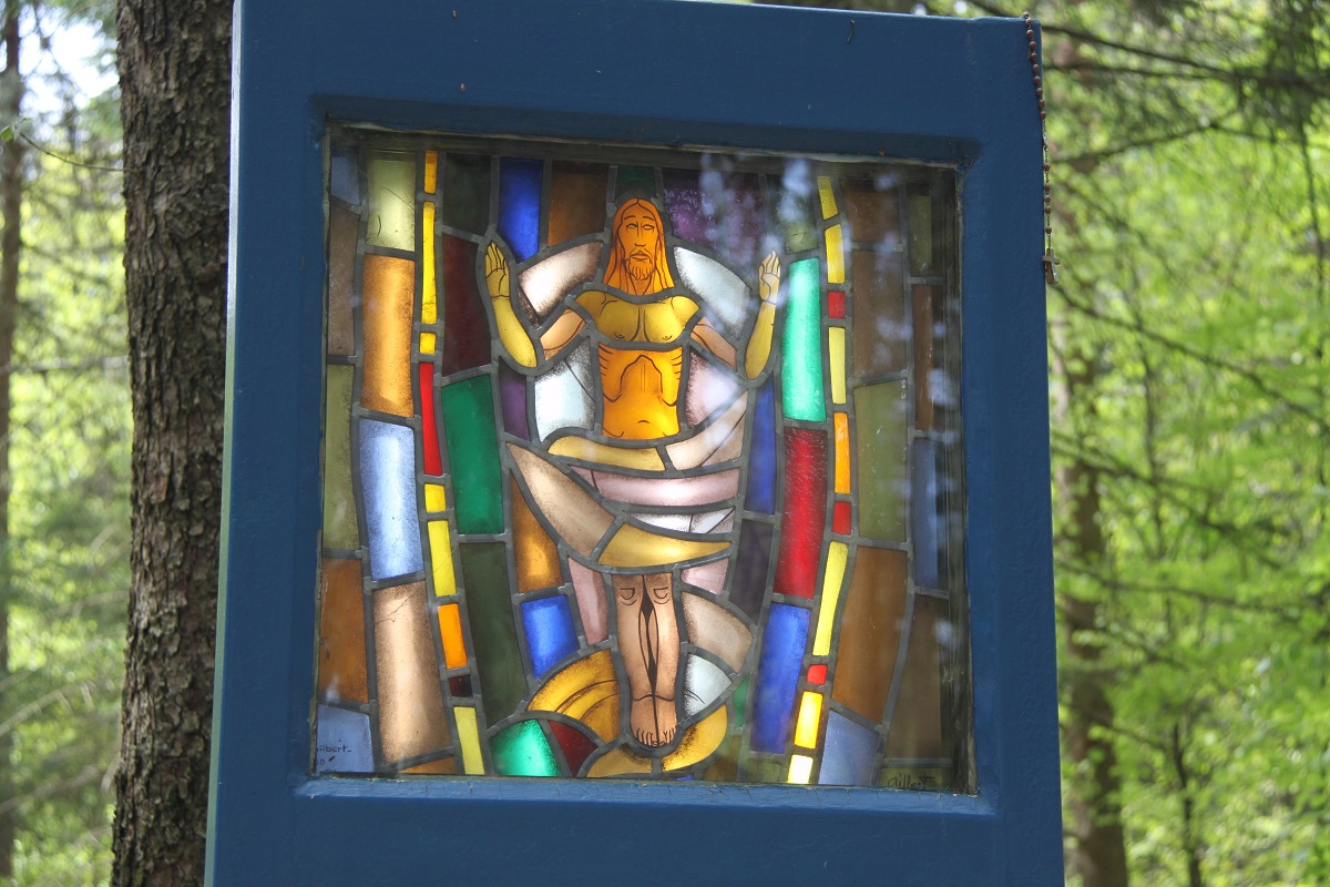 Dans le parc boisé du Sanctuaire de Banneux, un beau chemin de croix invite à la méditation.