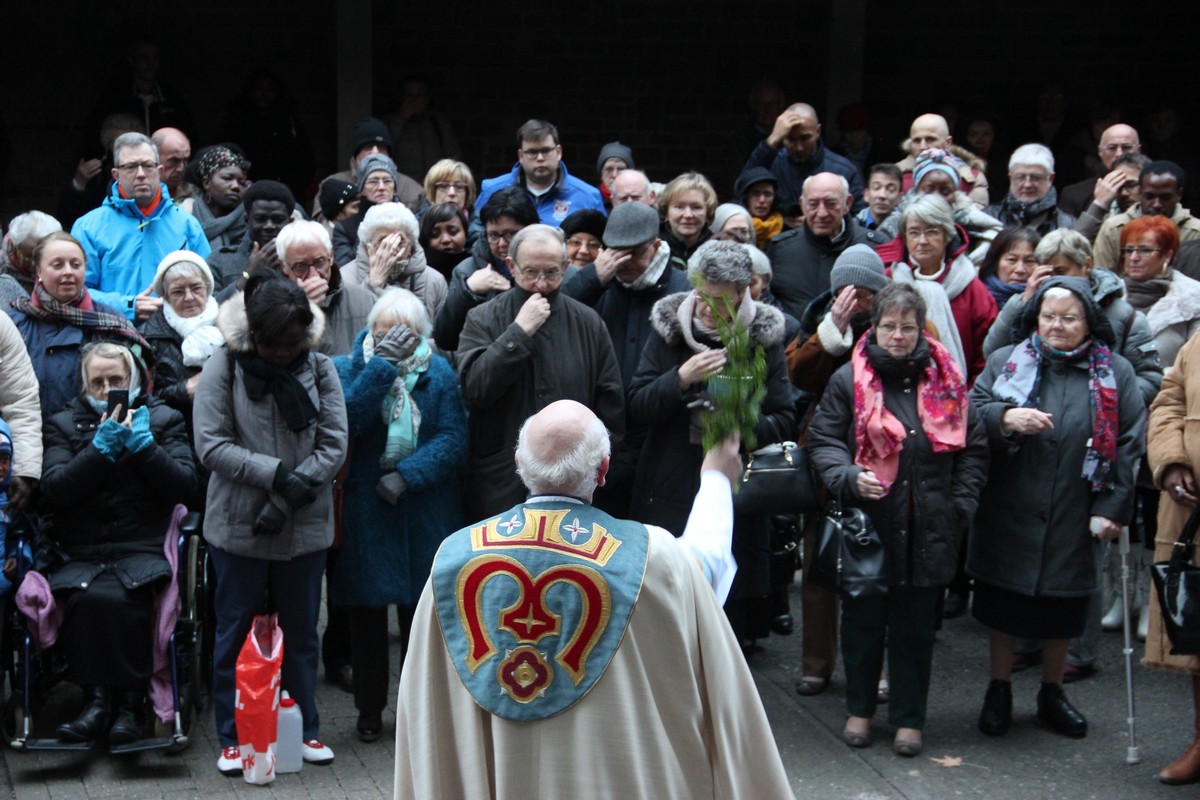 Le Recteur bénit toute l’assemblée avec l’eau de la Source.
