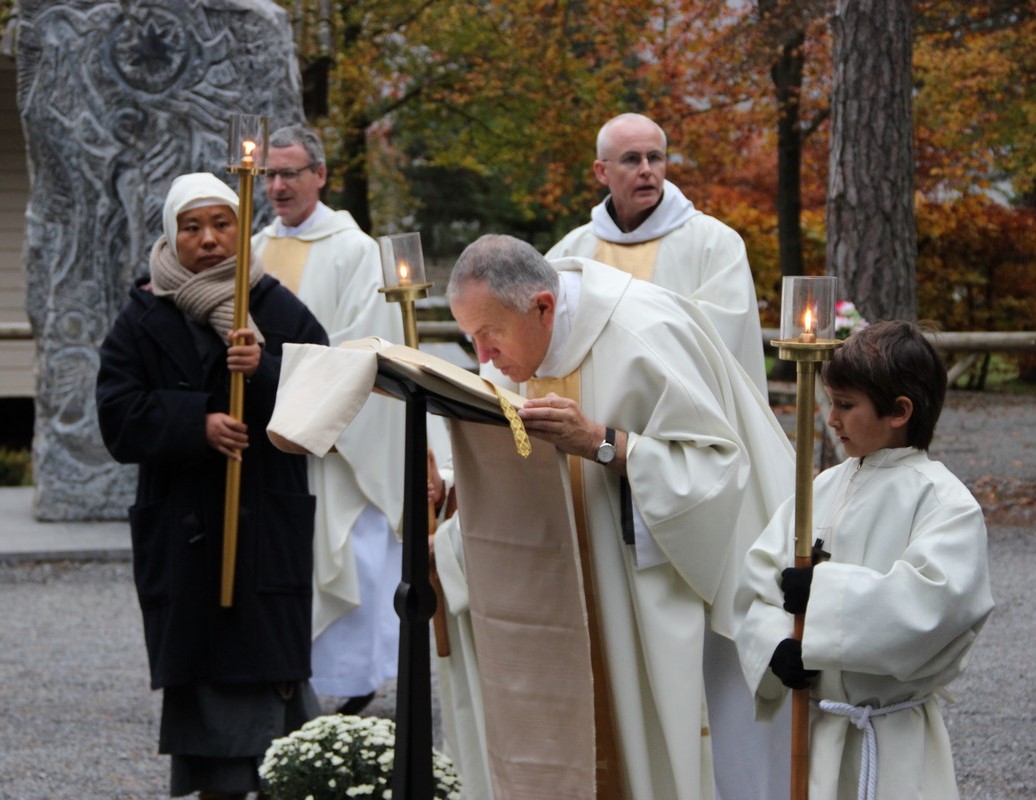 Le Recteur invite chacun à vénérer l’évangéliaire en posant la main ou en le baisant.