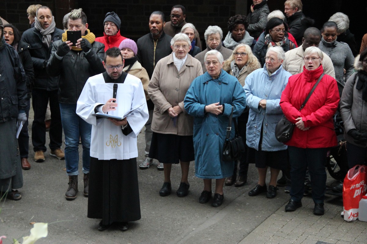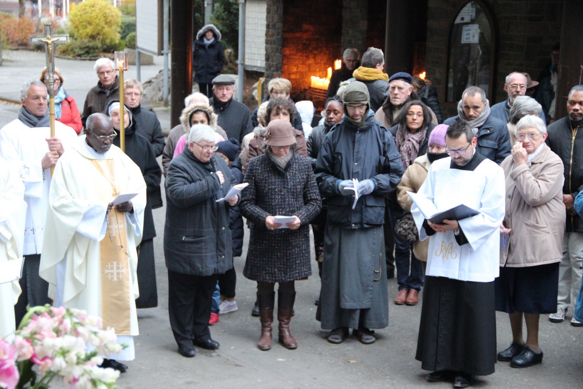 Arrivés à la Croix, les lecteurs redisent des paroles du pape François :