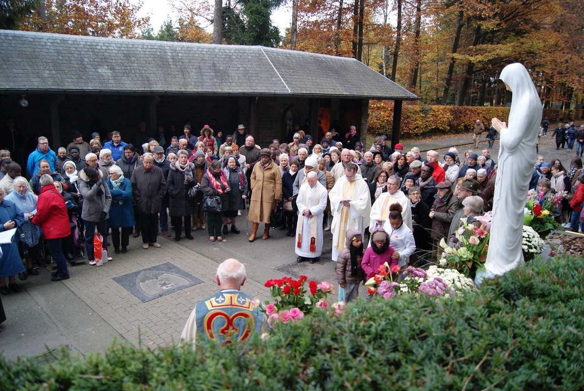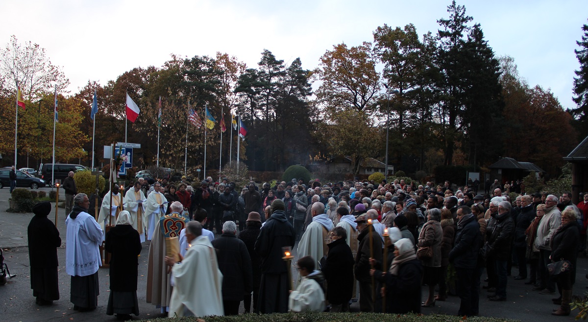 Arrivée à la Source, l’assistance écoute ces mots du pape François :