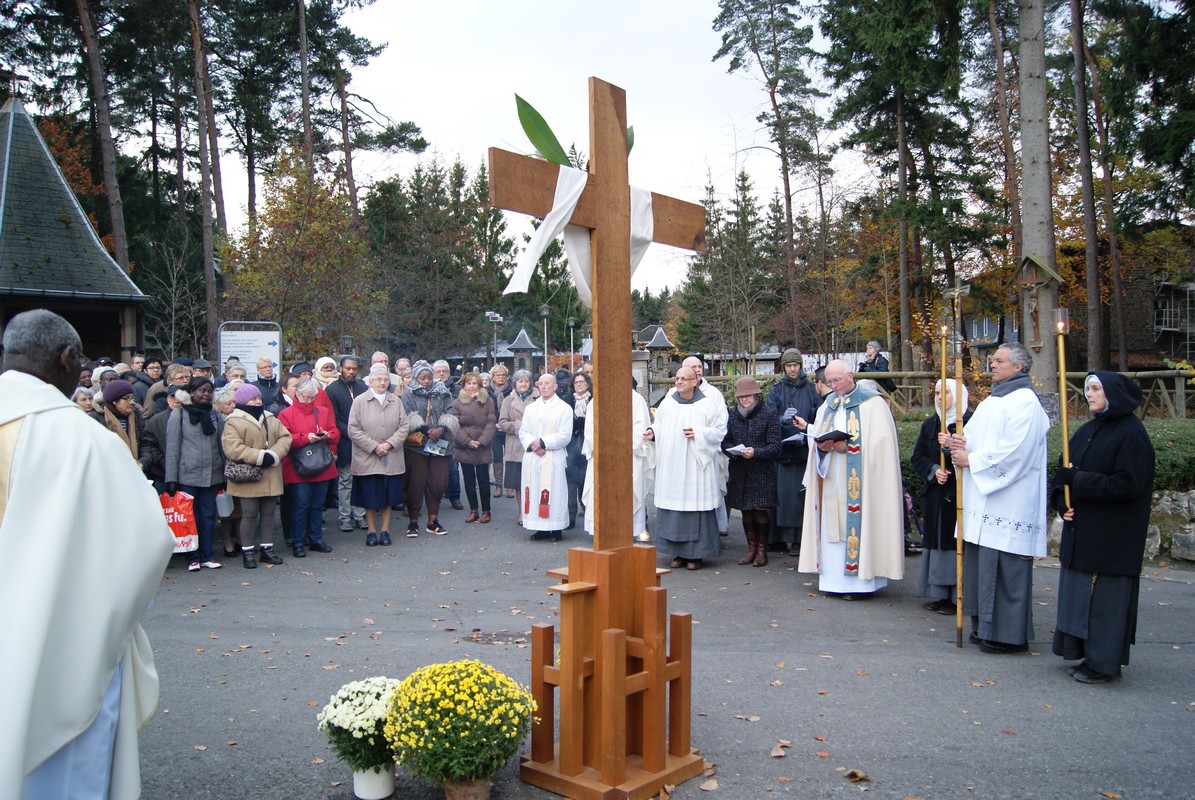 Lorsque toute l’assemblée a chanté le Salve Regina, le Recteur invite chacun à s’incliner devant la Croix, puis à reprendre la procession vers la Porte Sainte.