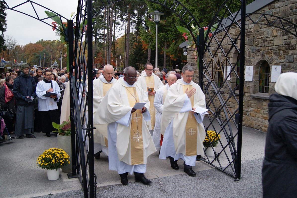 Le Recteur invite toute l’assemblée à passer la Porte Sainte, avant de terminer la procession à la Chapelle du Message où la messe sera célébrée.