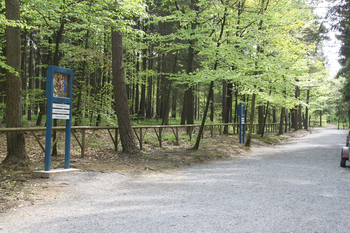 Dans le parc boisé du Sanctuaire de Banneux, un beau chemin de croix invite à la méditation.